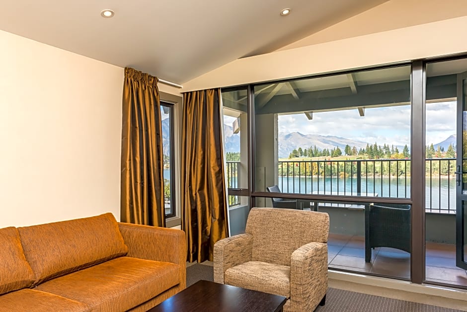 This Suite features large bay windows which frame the views of Lake Wakatipu and The Remarkables Mountain. This suite also features a separate bedroom and lounge area, a spa bath, and a spacious balcony.